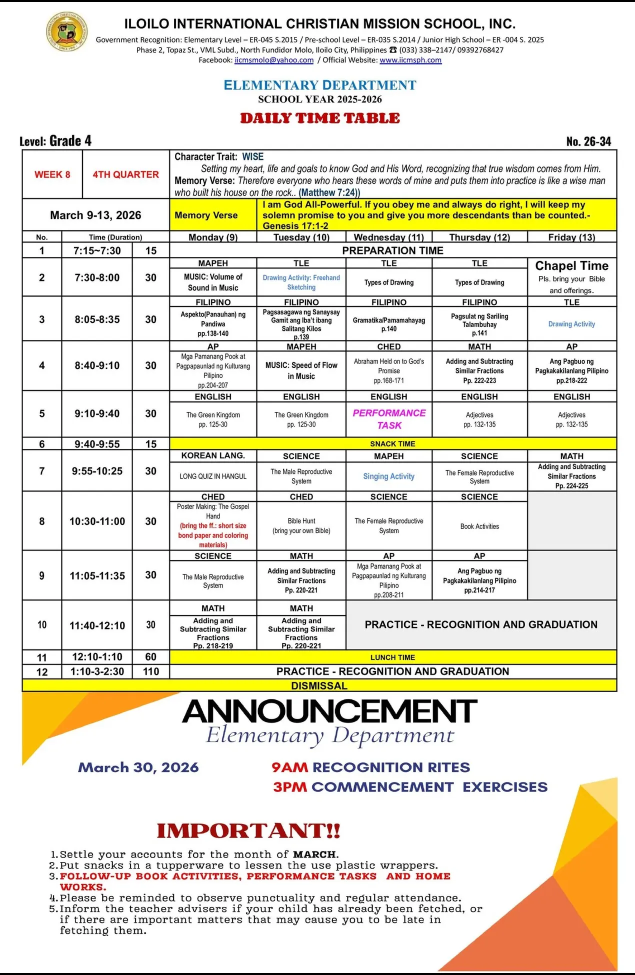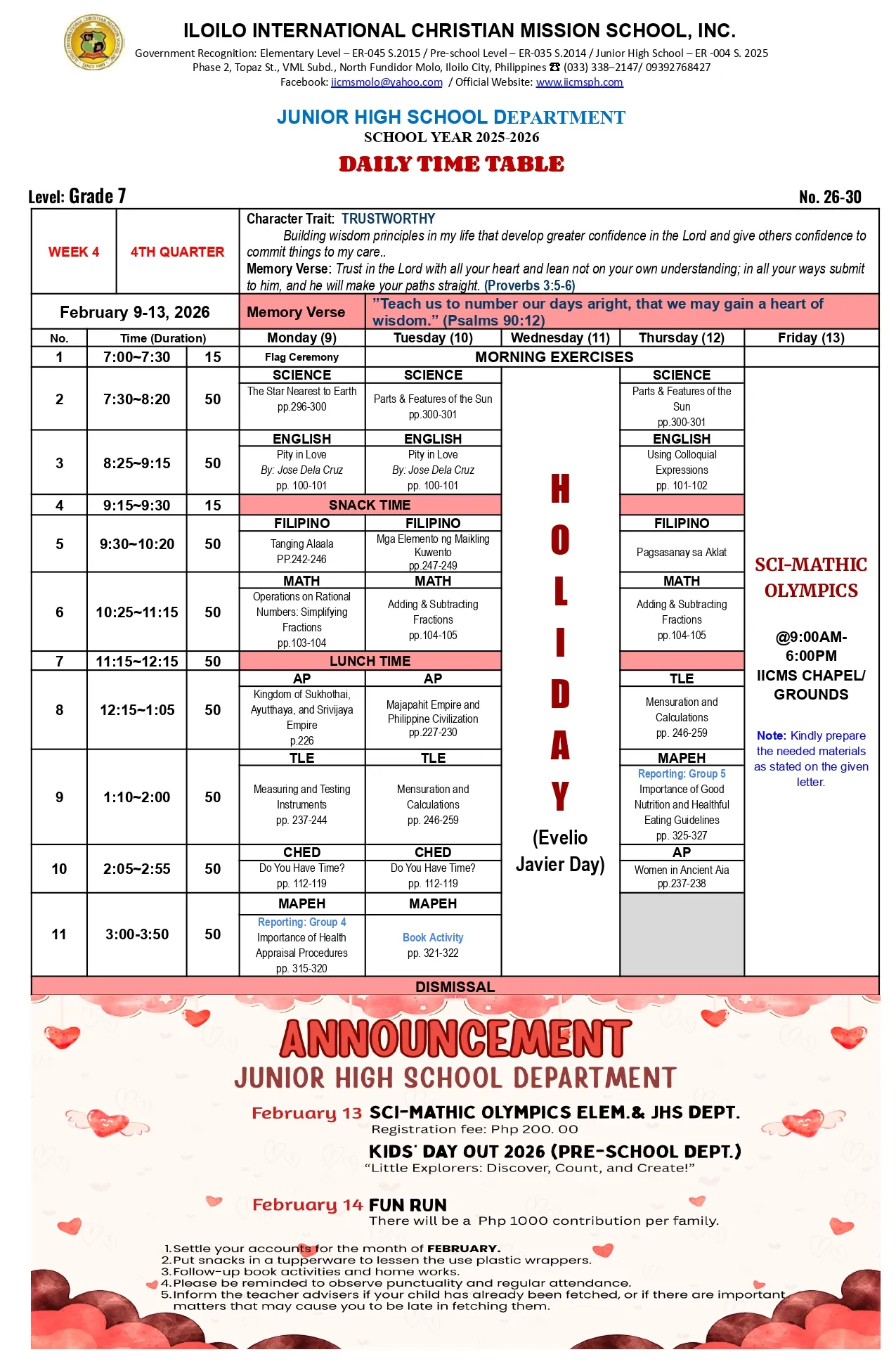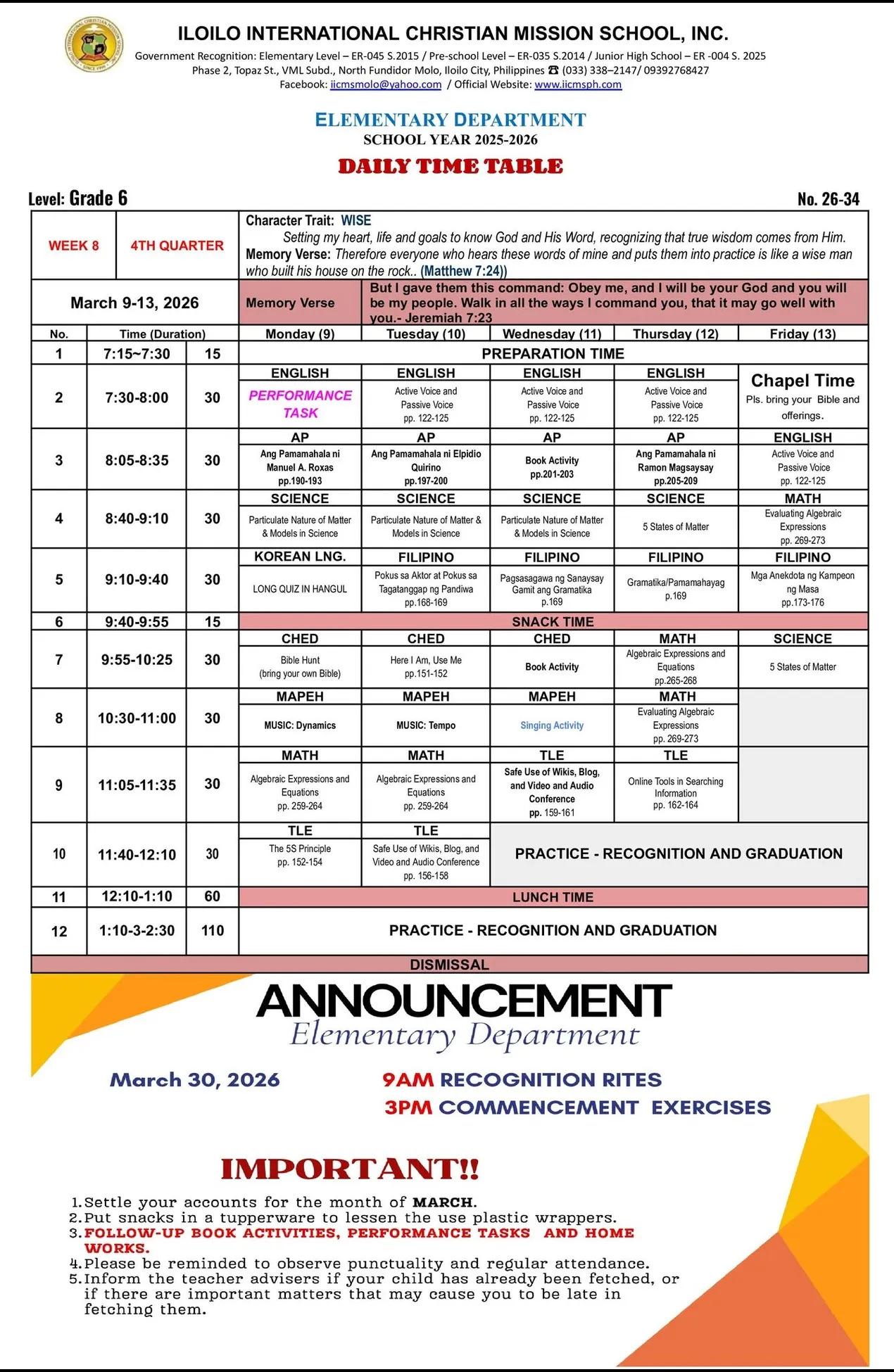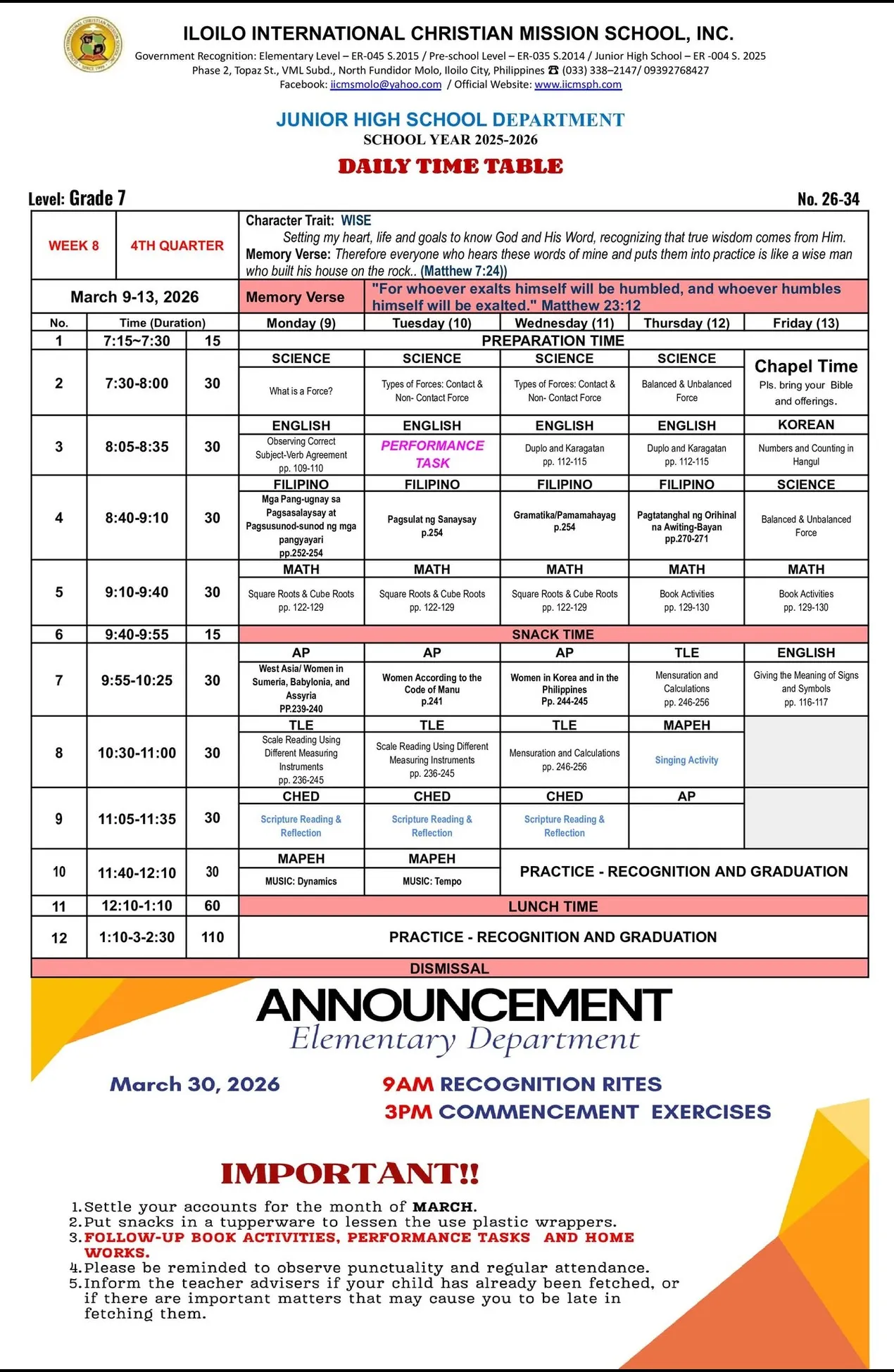 IICMS Junior High School Pointers