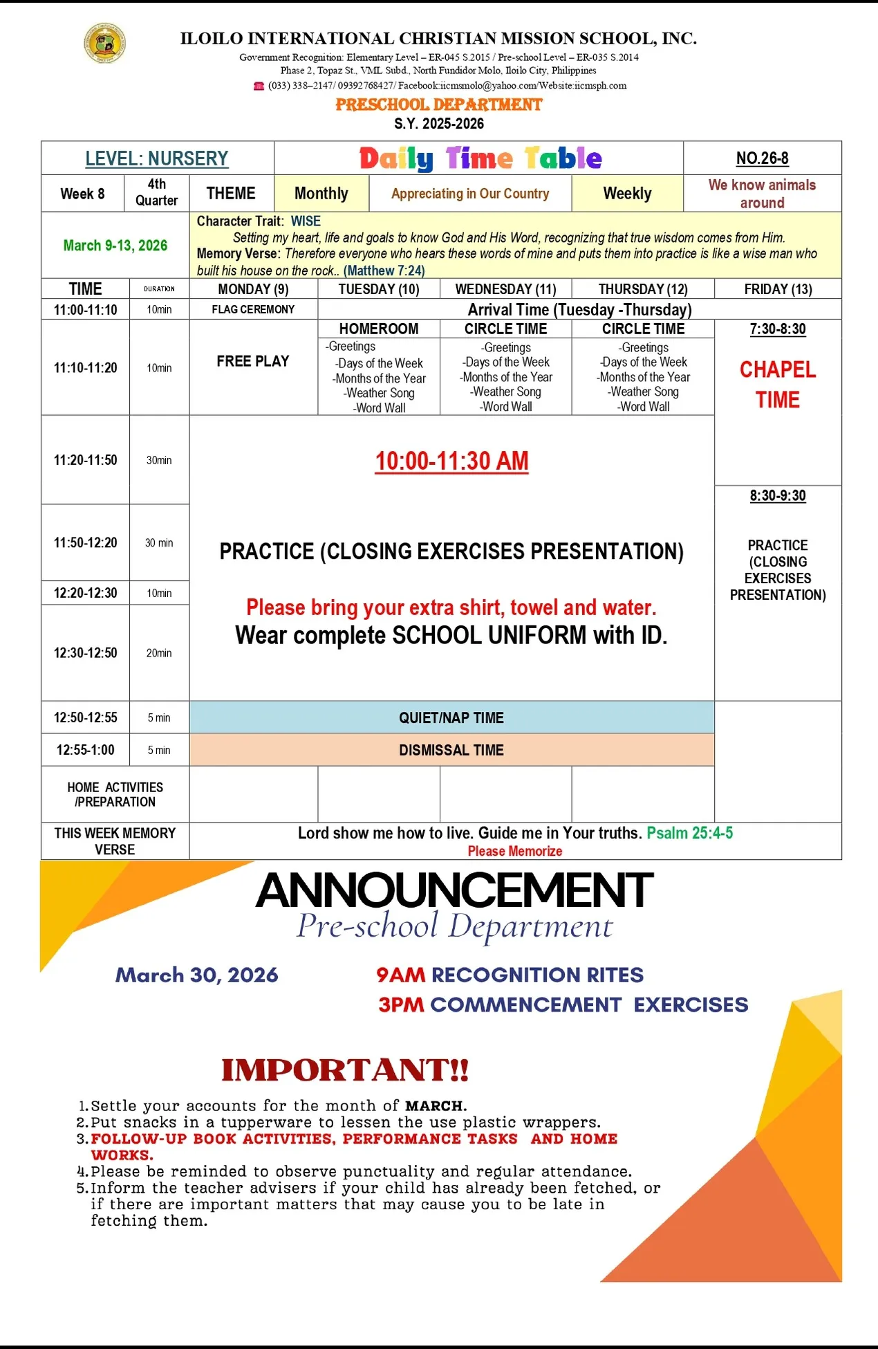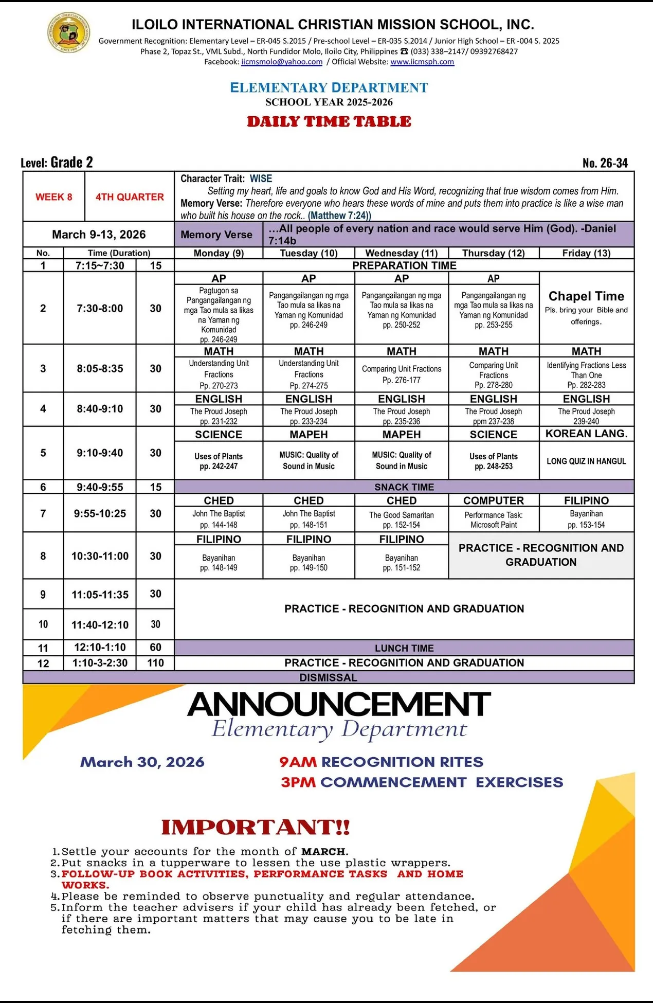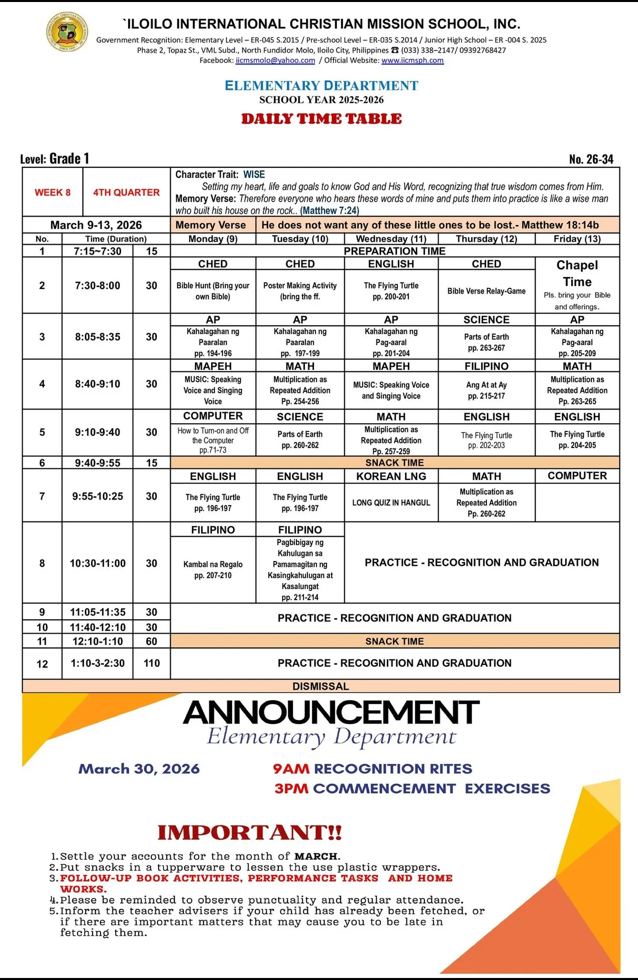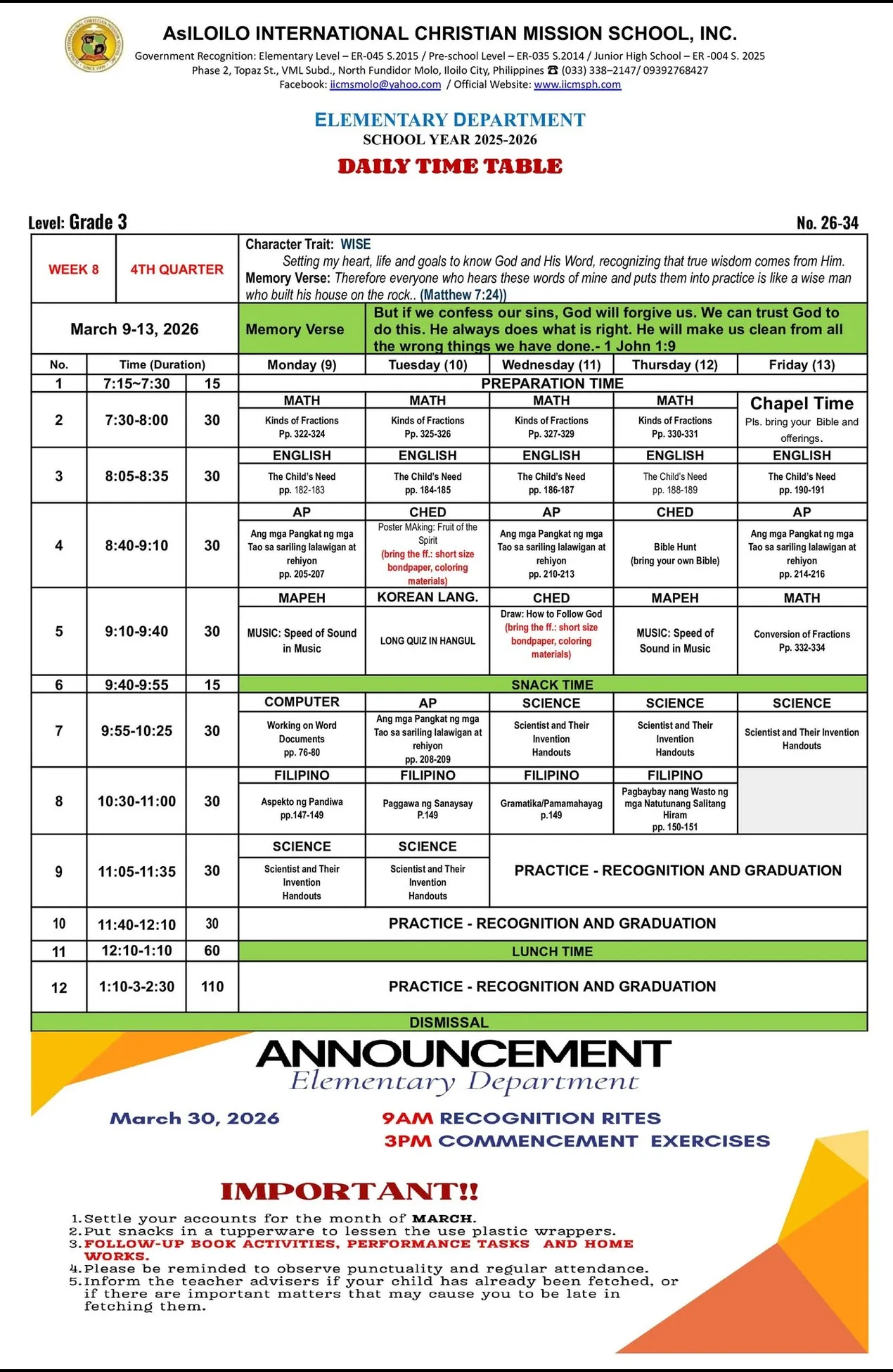 IICMS Junior High School Pointers