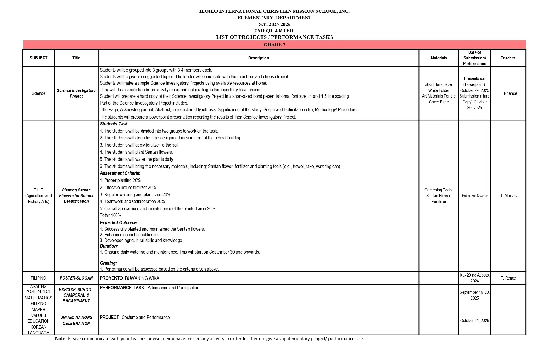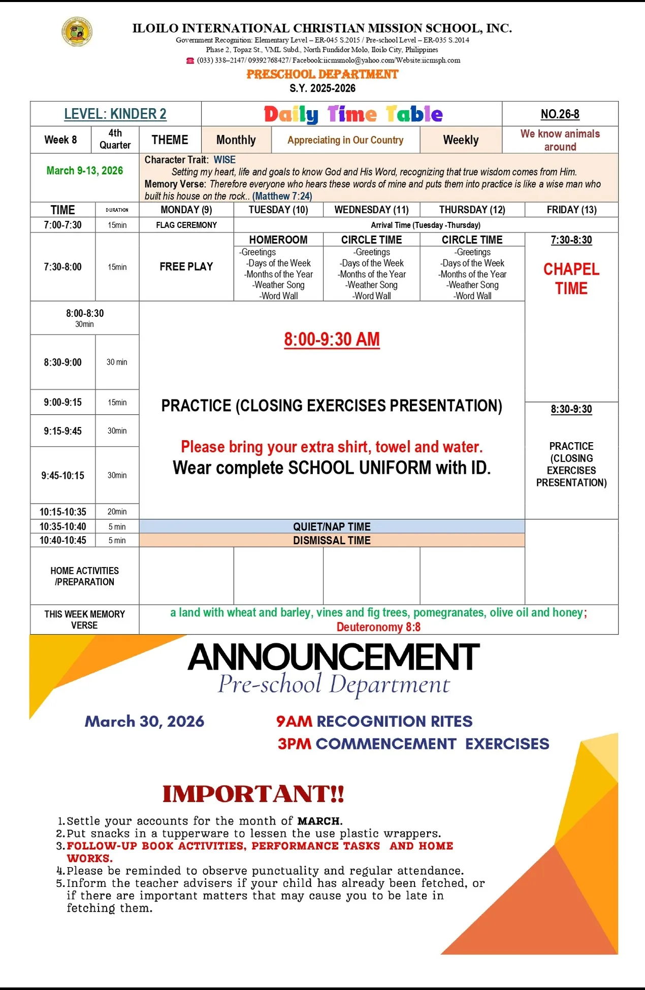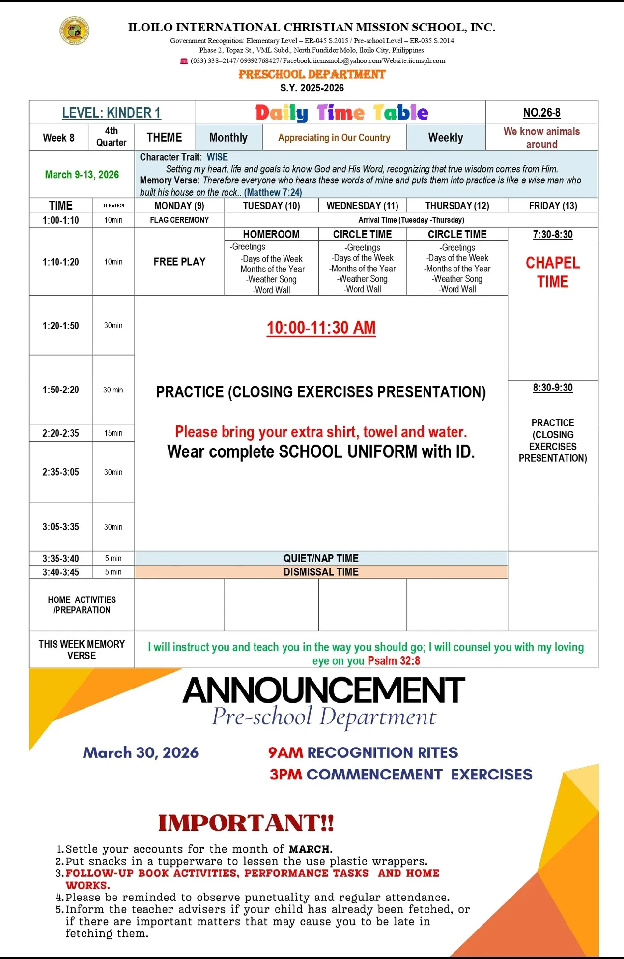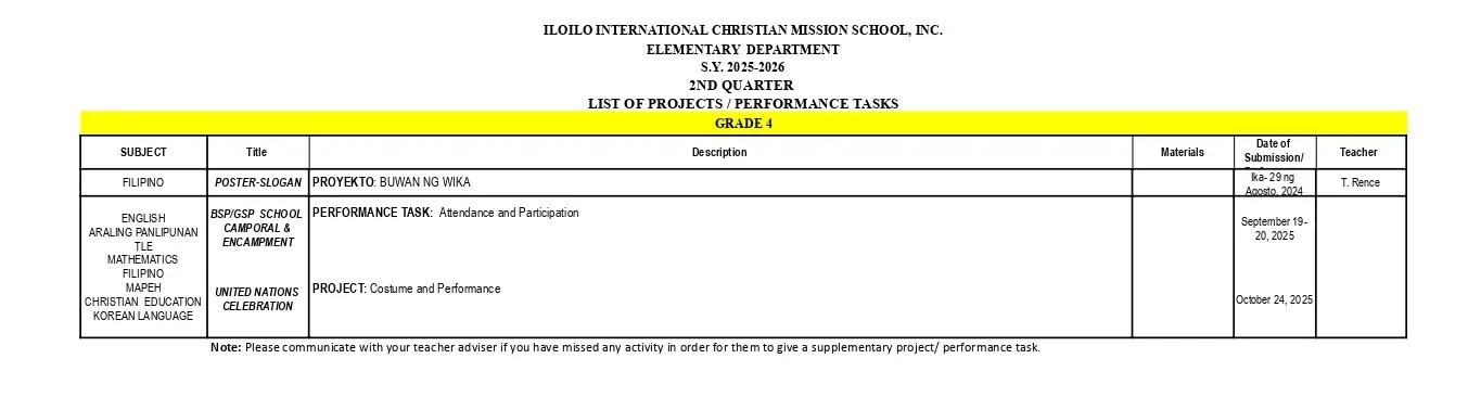 IICMS Junior High School Pointers