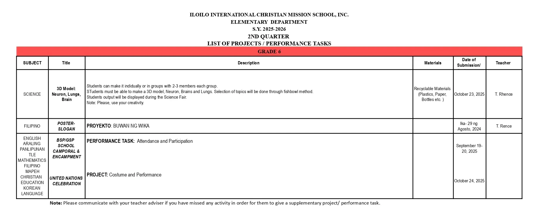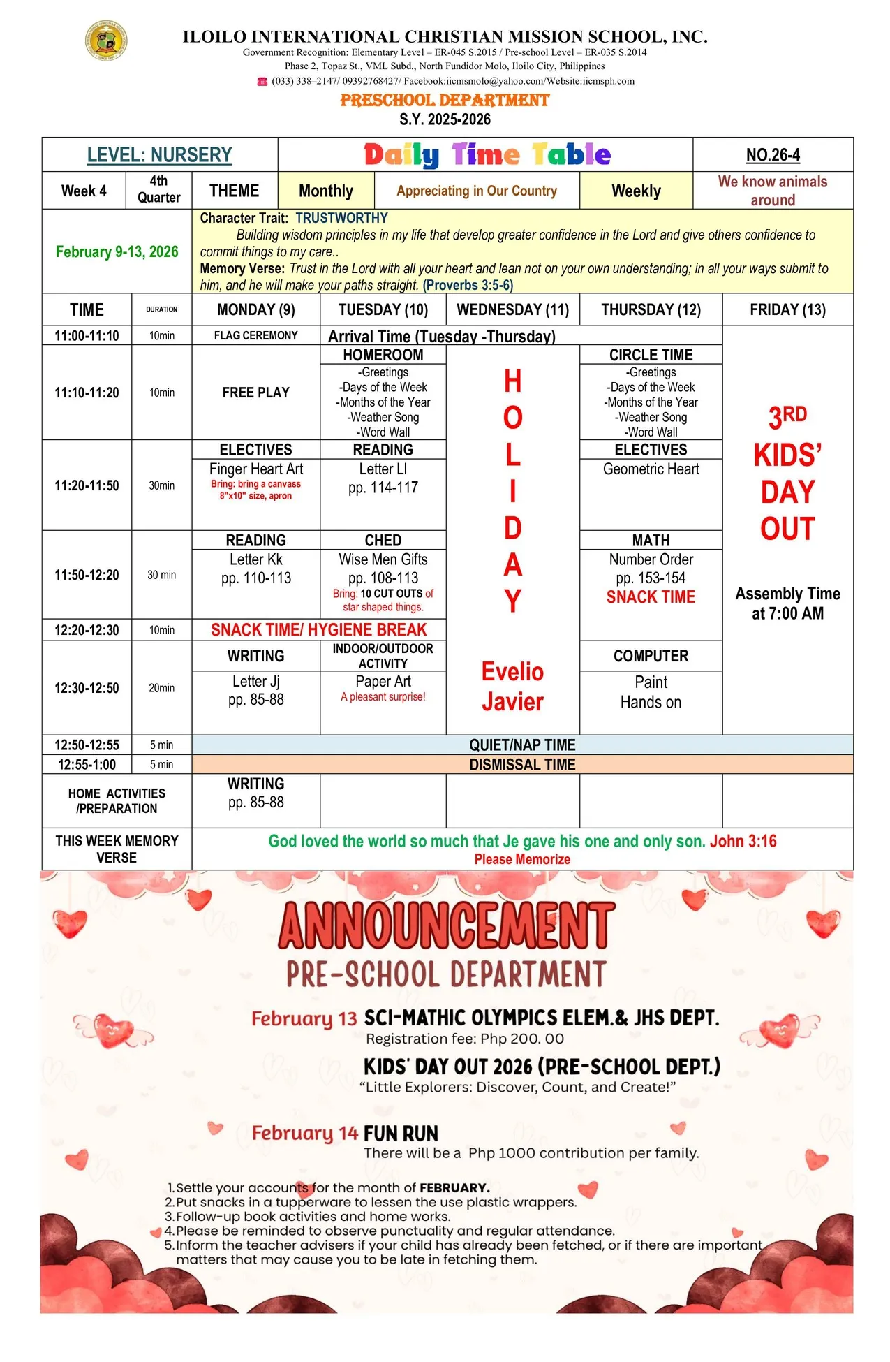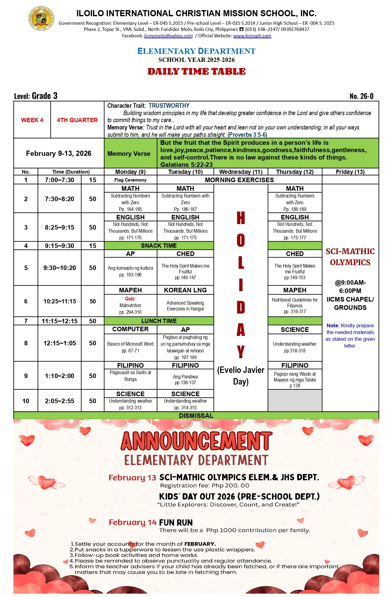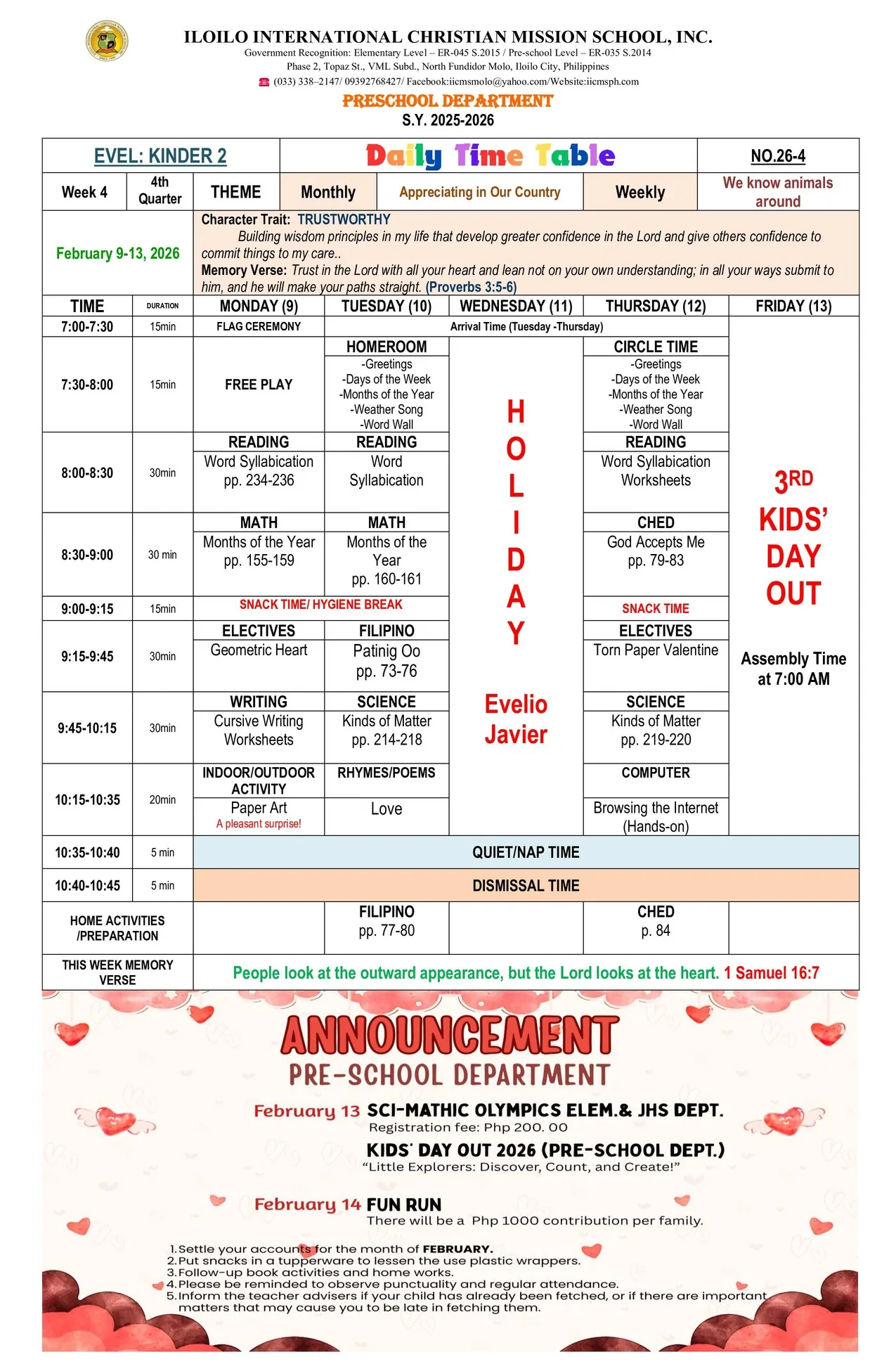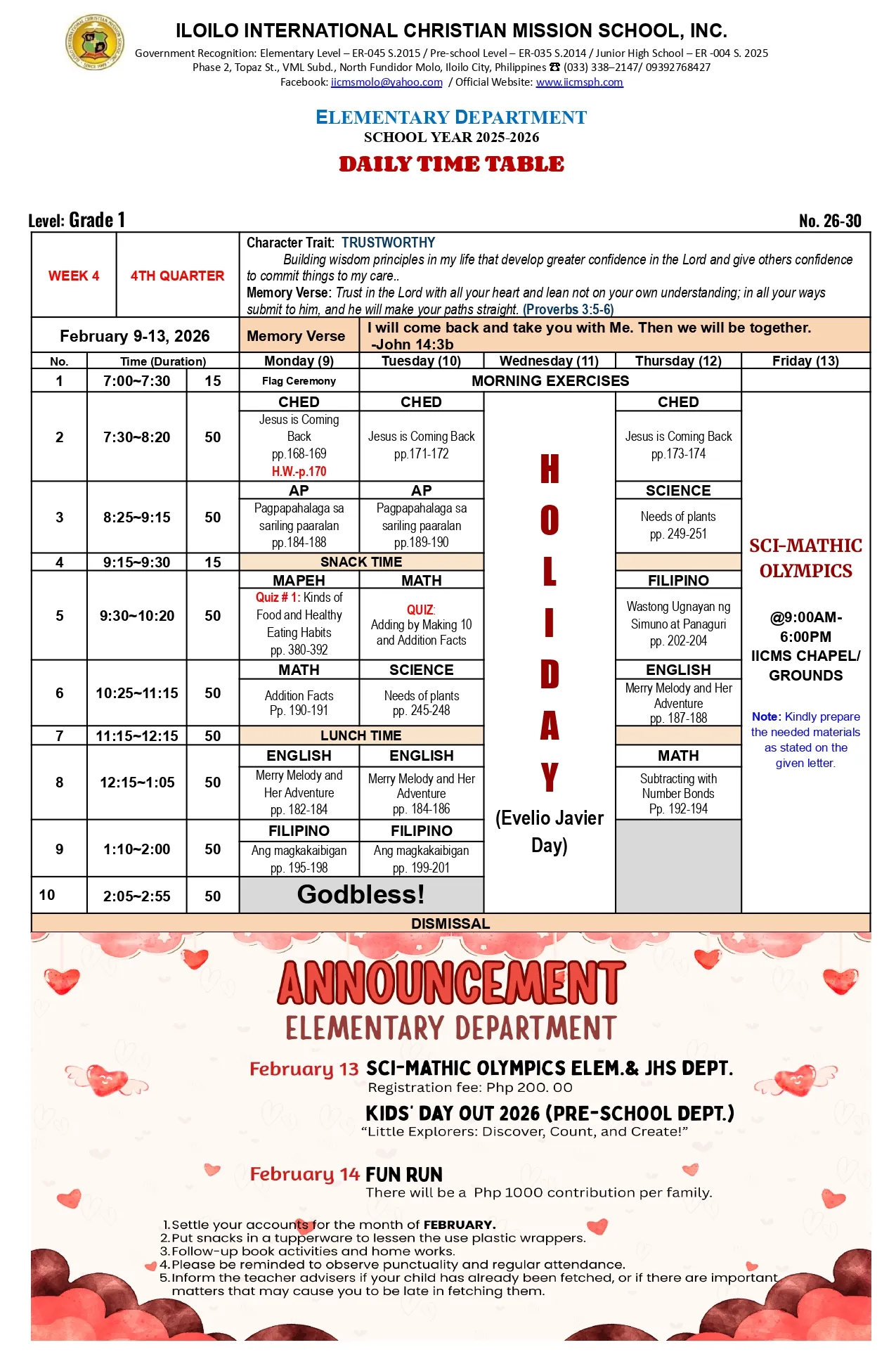 the school activities and other important matters so parents can monitor and follow-up their child/children’s homework and lessons at home.