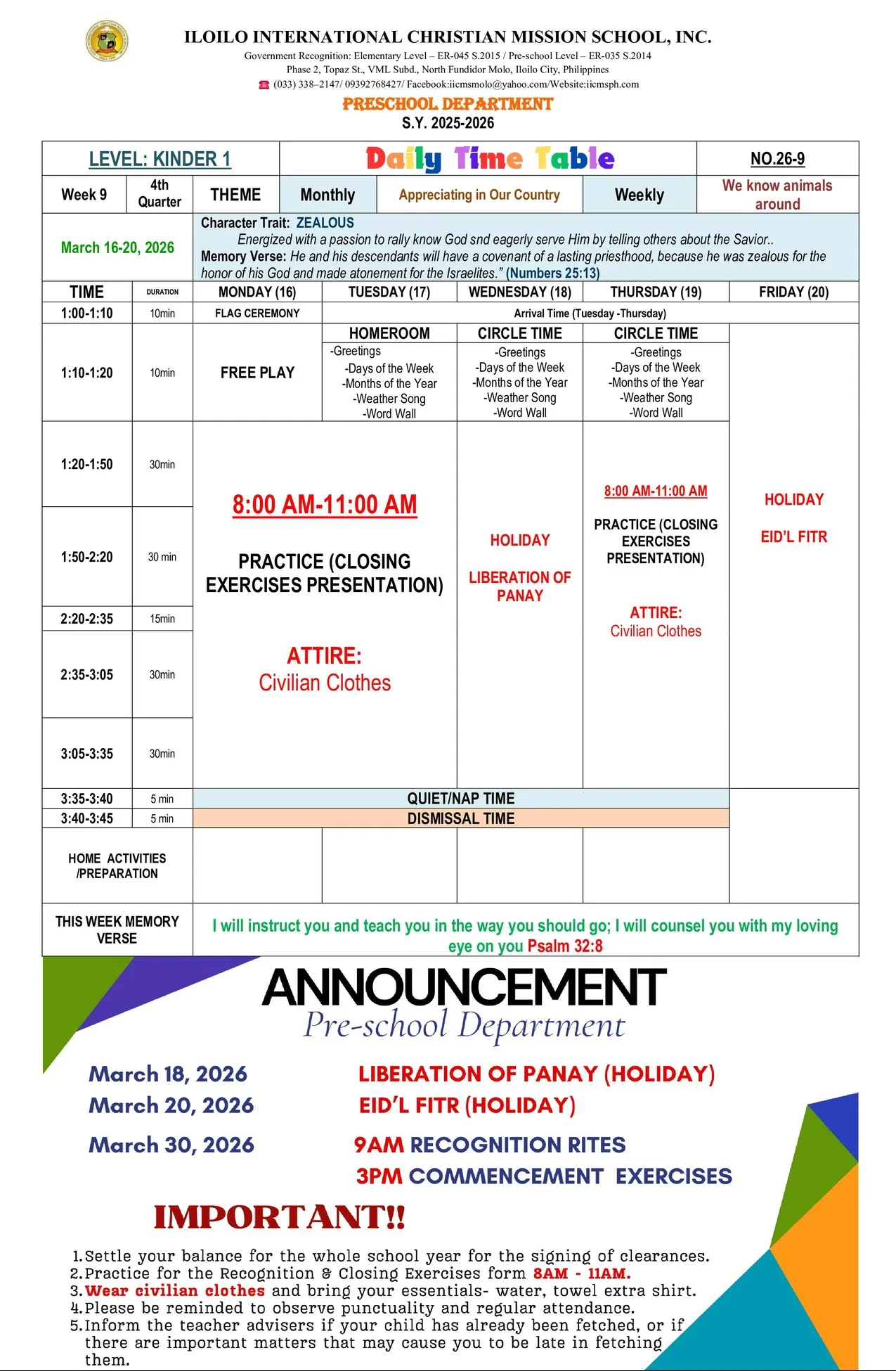 IICMS Preschool Pointers